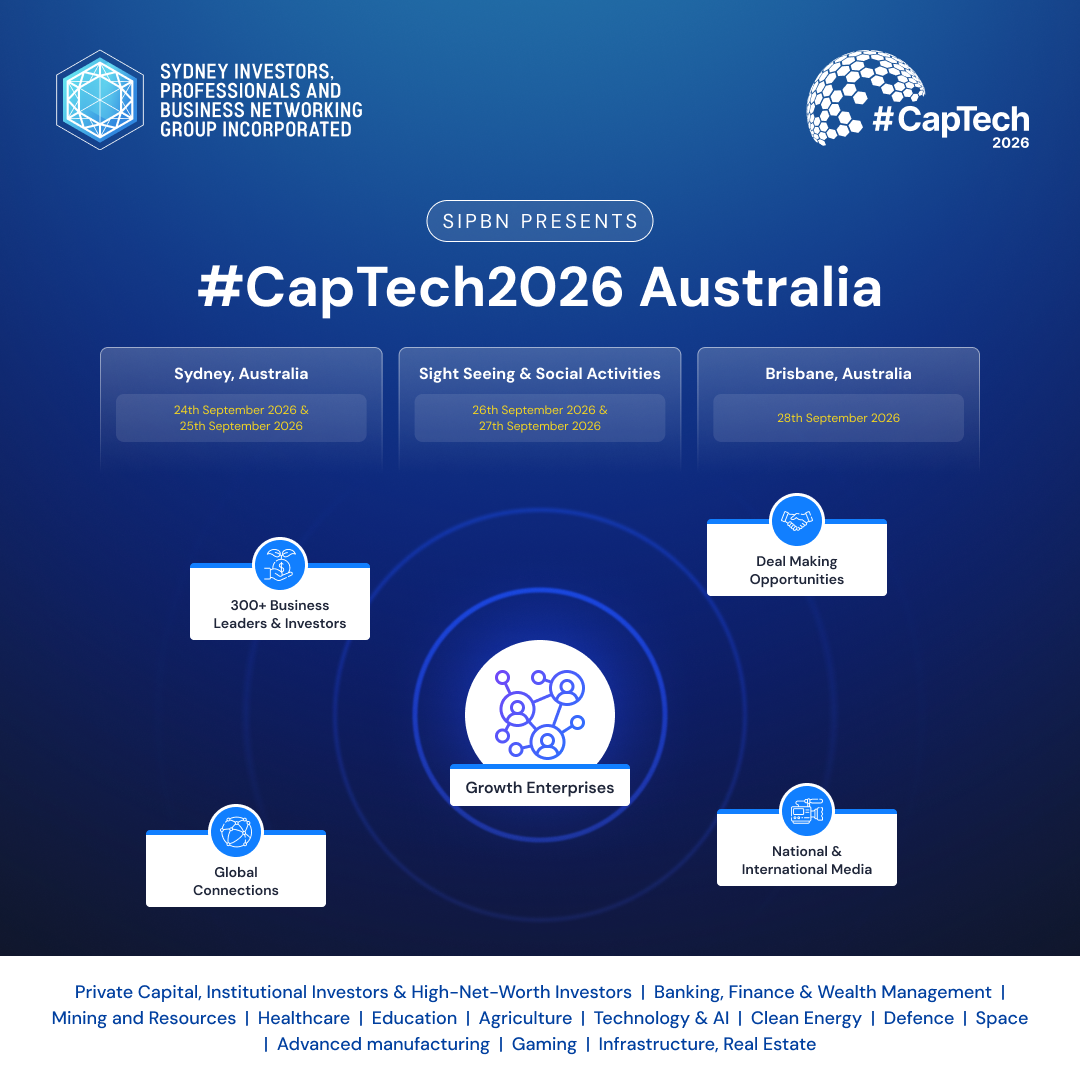 #CapTech2026 is your premier gateway to the future of innovation, investment, and industry transformation. Hosted by SIPBN (Sydney Investors Professionals & Business Networking Group Inc.), this global summit unites top business leaders, policymakers, investors, and innovators across eight critical sectors.